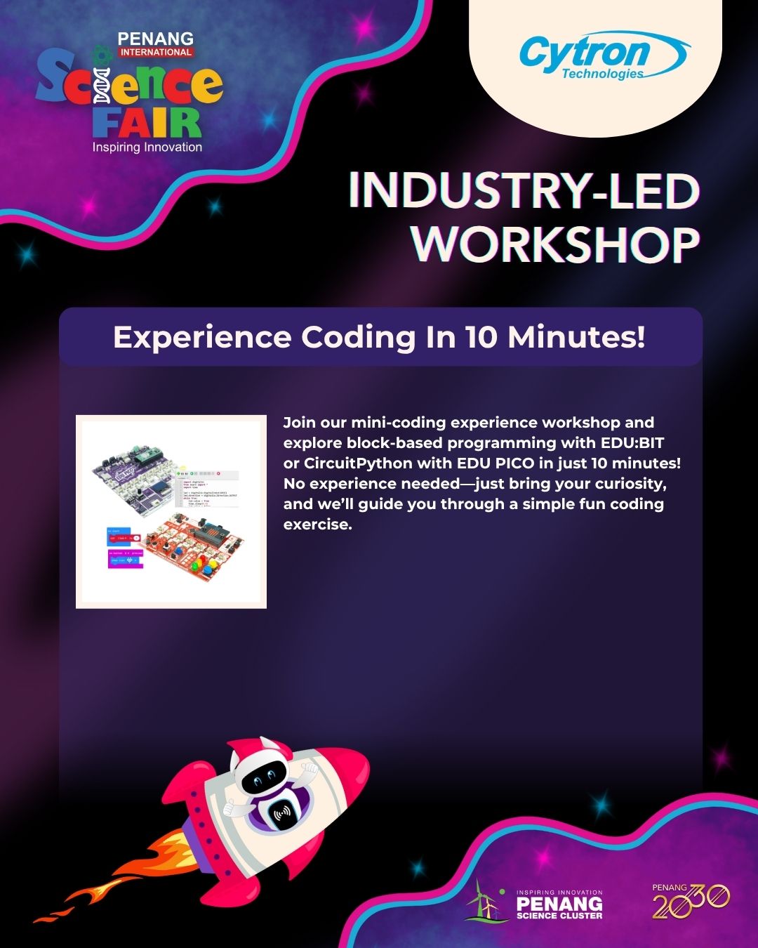 INDUSTRY-LED WORKSHOPS No registration is required for the public. You’re invited to join our workshops and exhibitions at SPICE Arena and Concourse from 9 AM to 5 PM. Feel free to drop by at your preferred time.